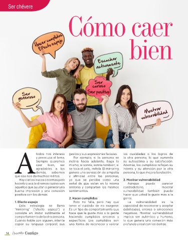 caer bien, ser mismo; si sonríe, sonría también; si Además, los cumplidos reflejan su